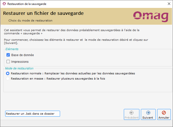 Accès : Dossier → Restauration