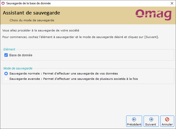 Accès : Dossier → Sauvegarde