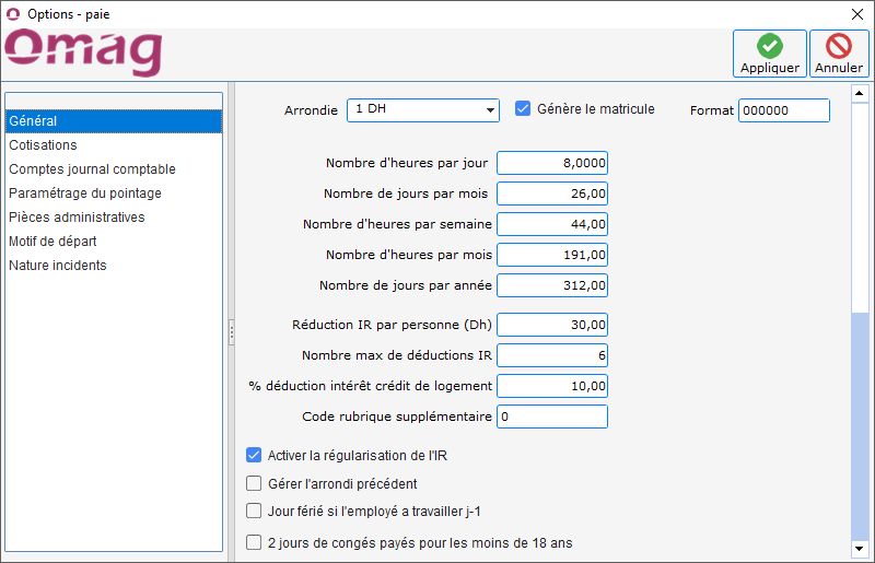 - Règles générales de paie